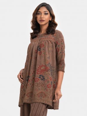Brown Crepe Abaya Style Top Bottom Set