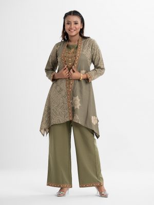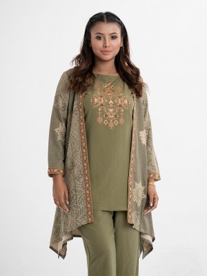 Olive Jacquard Top Bottom Set
