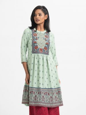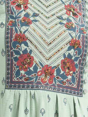 Green Crepe A-Line Kameez
