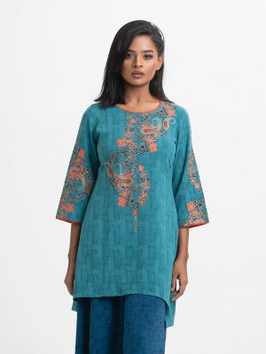 Teal Stretchable Georgette A-line Tunic