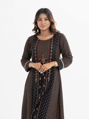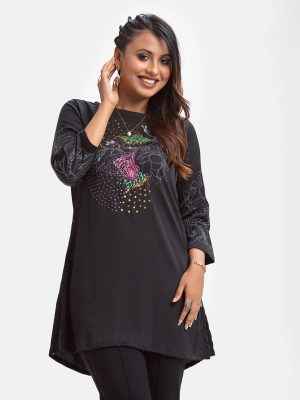 Black Viscose A-line Long Tunic