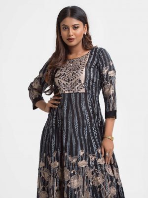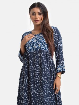 Blue Viscose A-line Kameez