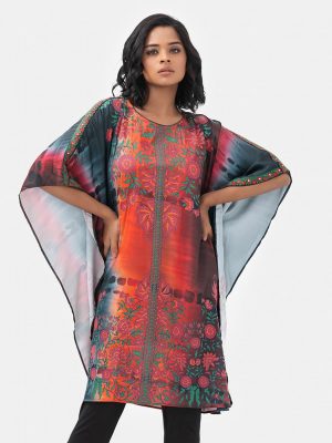 Multi-color Stretched Satin Kaftan-style Tunic