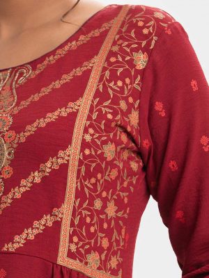Burgundy Viscose A-line Kameez
