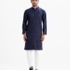 Men’s semi-fitted panjabi in jacquard cotton fabric. Karchupi at mandarin collar with metal buttons on the placket.