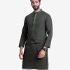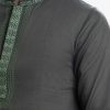 Men’s semi fitted panjabi in jacquard cotton fabric. Embroidery at front and hidden button placket.