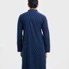Men’s semi-fitted panjabi in viscose fabric. Mandarin collar, inseam pockets and long sleeves. Line stitching at the collar and placket.