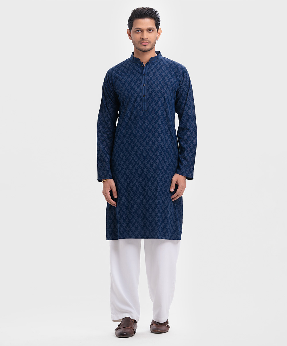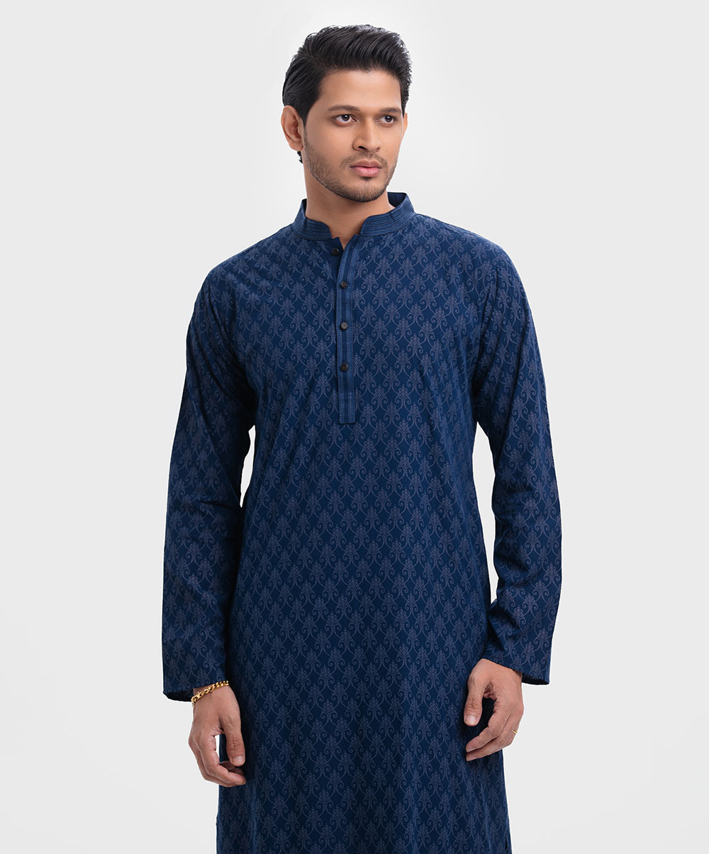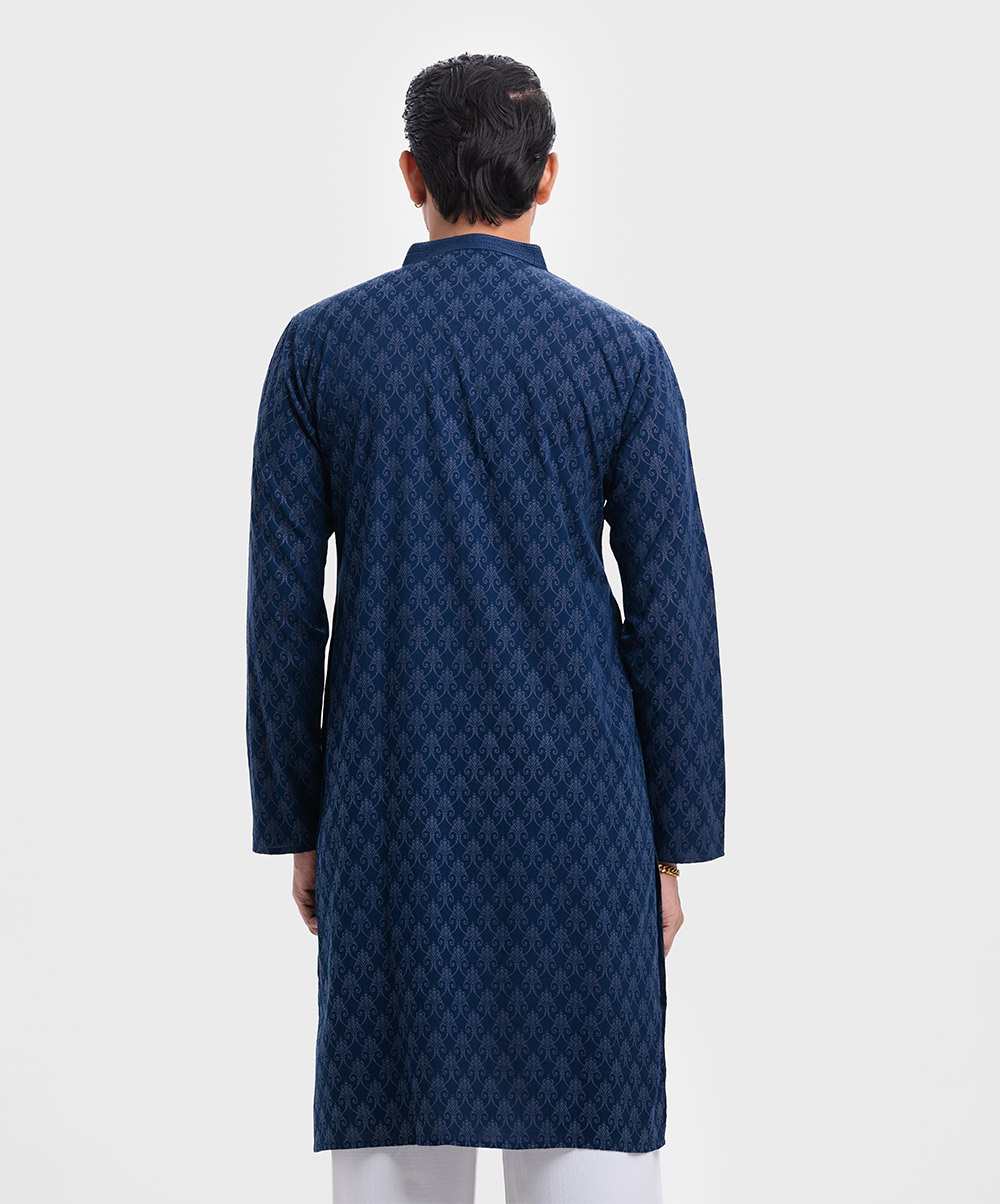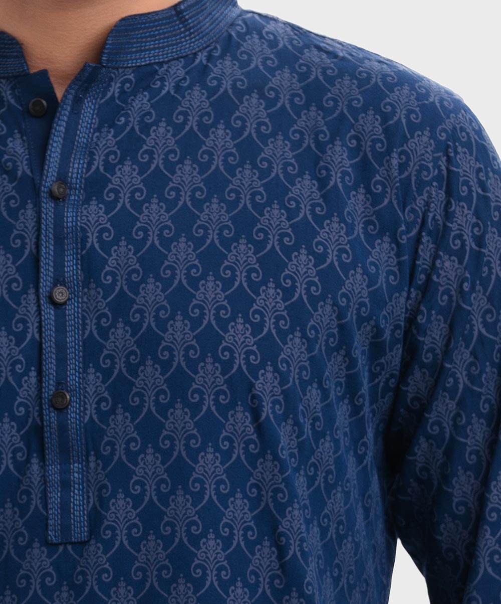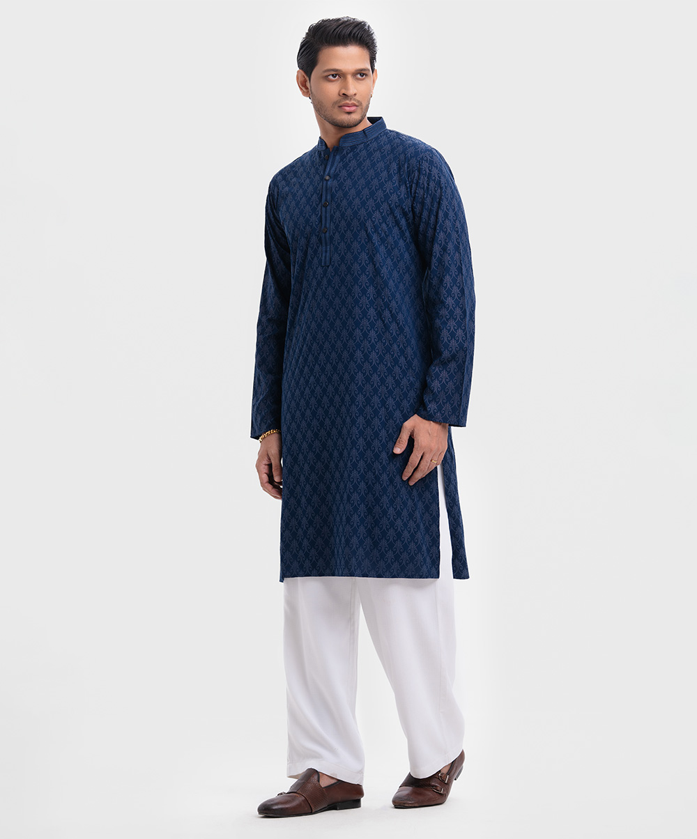 Blue Viscose Semi Fitted Panjabi