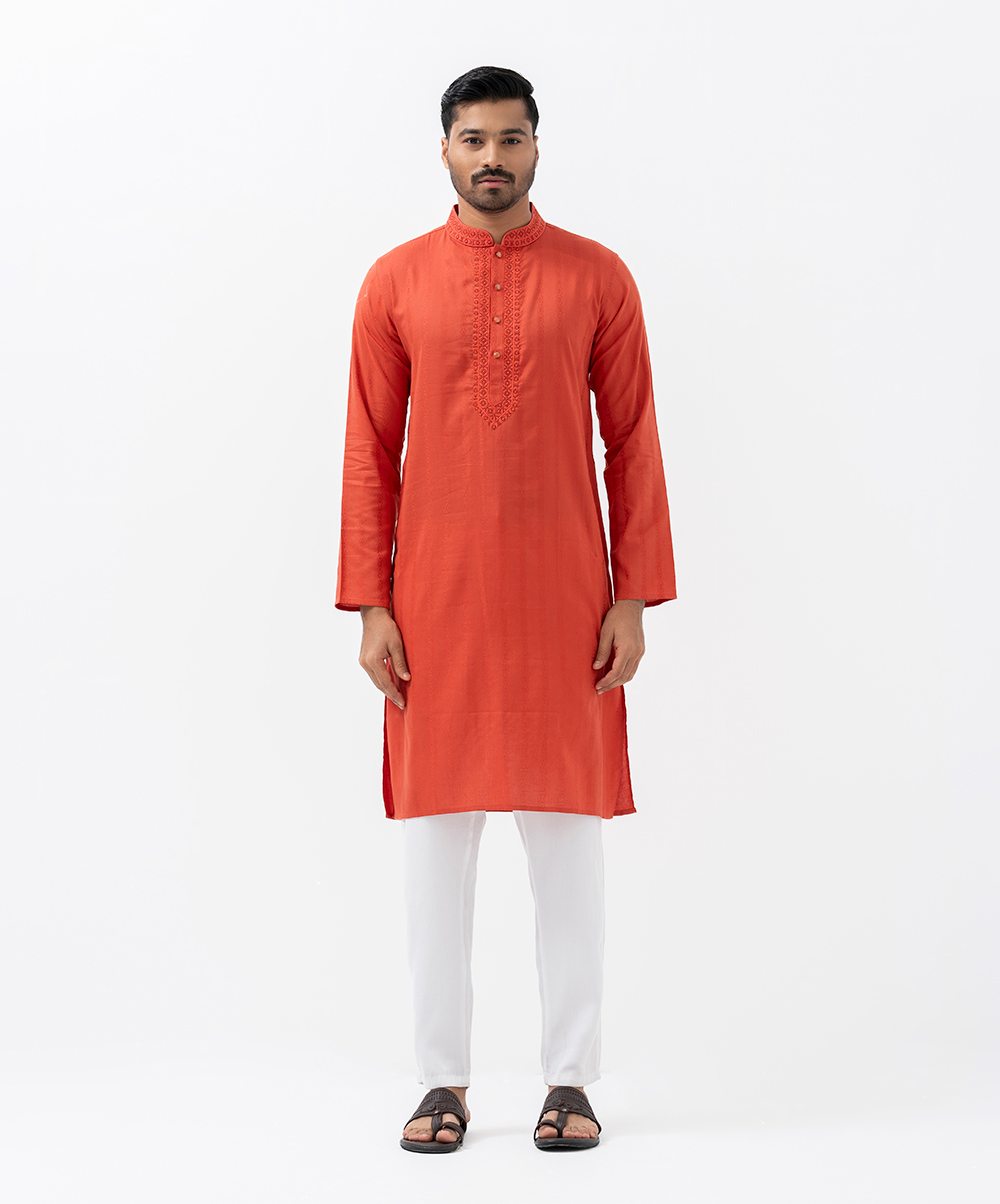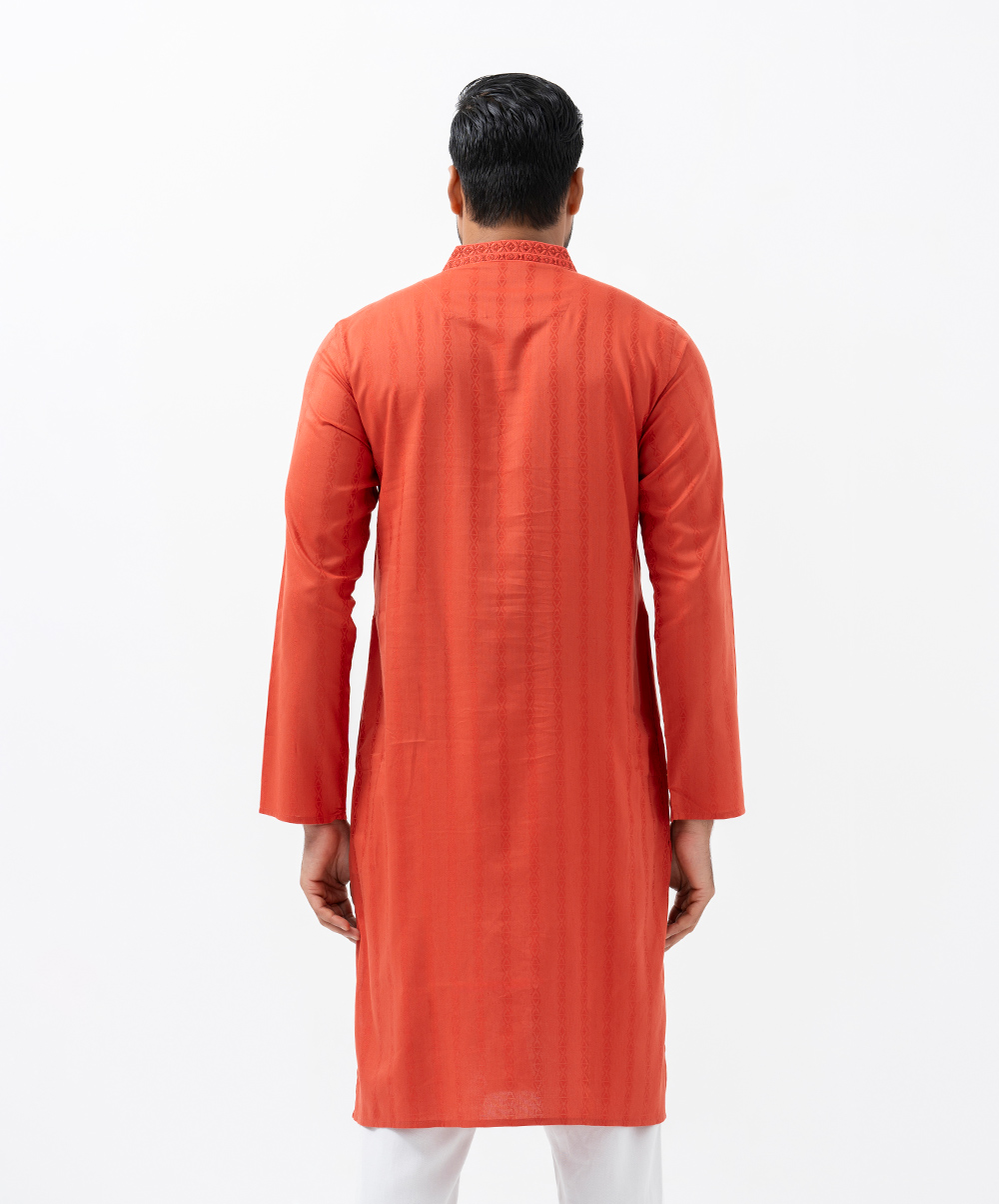 Orange Jacquard Semi Fit Panjabi