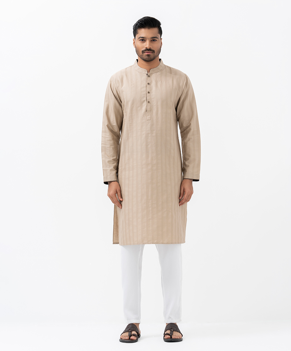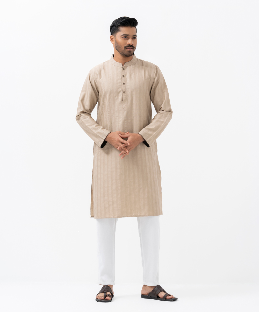 Beige Jacquard Semi Fitted Panjabi