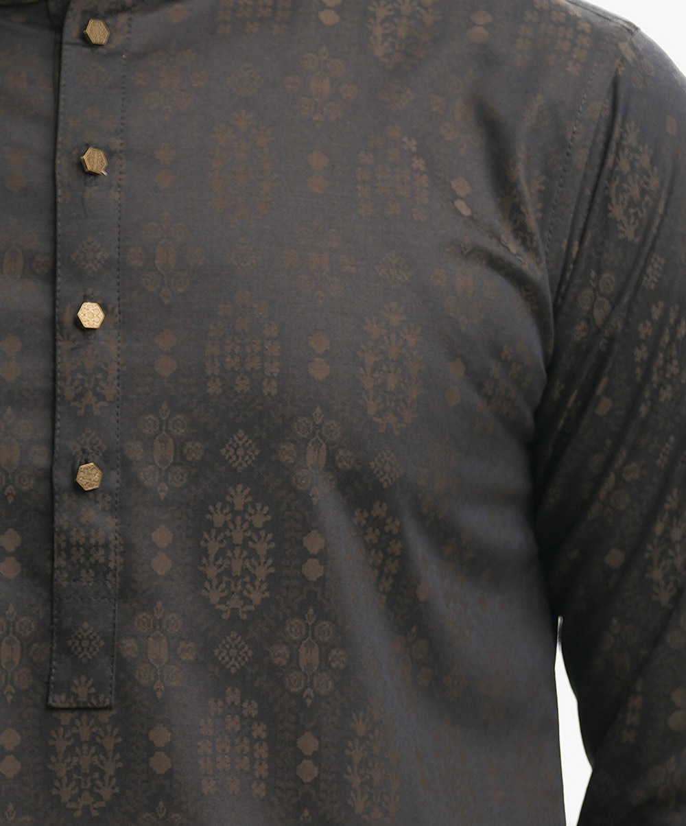 Black Jacquard Semi Fitted Panjabi