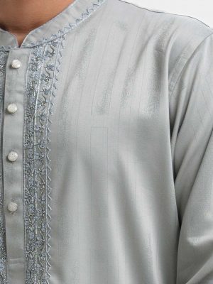 Gray Jacquard Cotton Fitted Panjabi