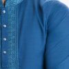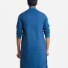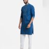 Men’s fitted panjabi in jacquard cotton fabric. Mandarin collar with metal buttons placket. Embroidery at front.