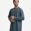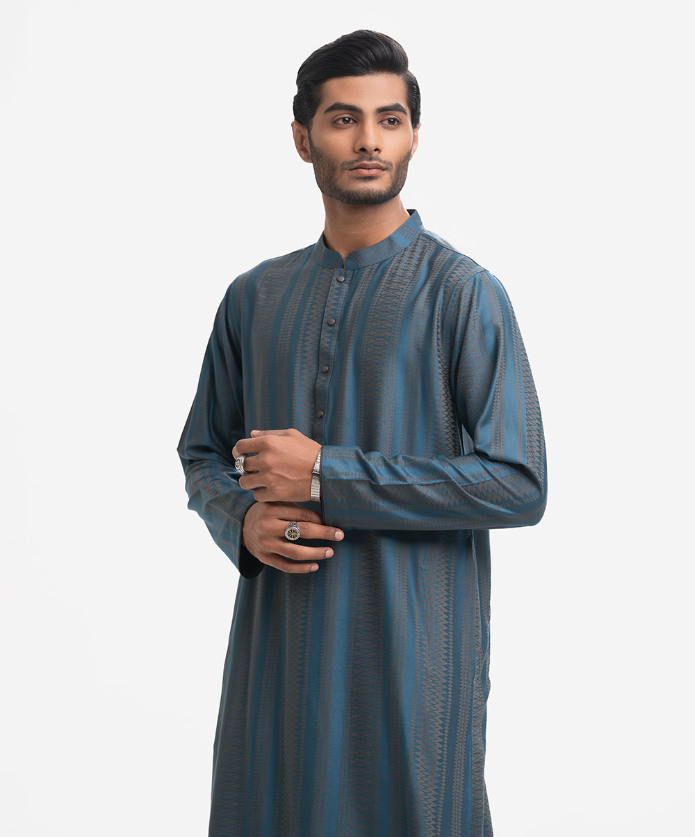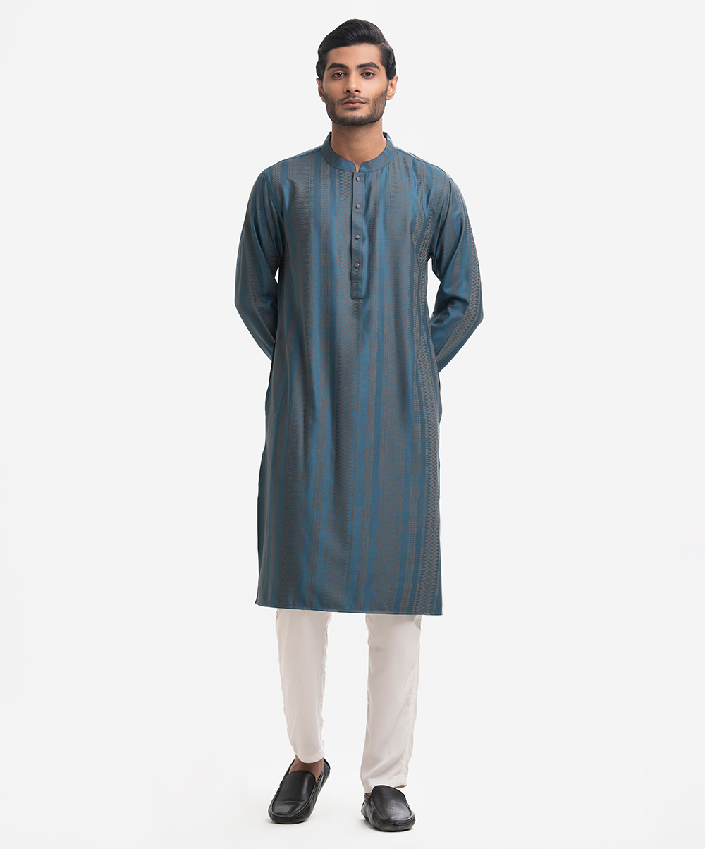 Men’s fitted panjabi in bamboo jacquard fabric. Long sleeves, inseam side pockets.