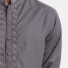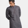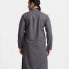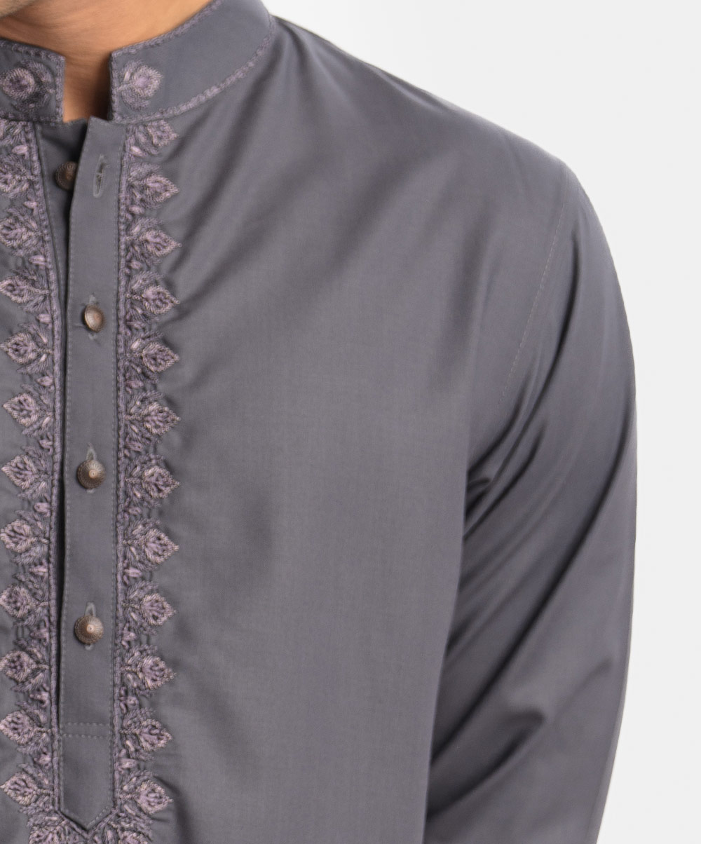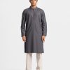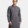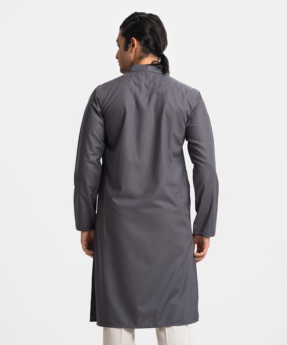 Fitted panjabi with a band collar in blended fabric. Handstitched on the collar and placket.