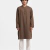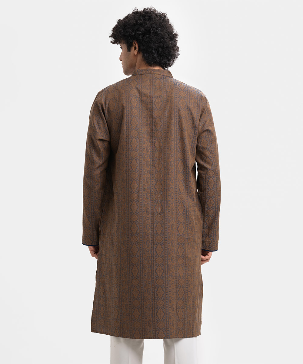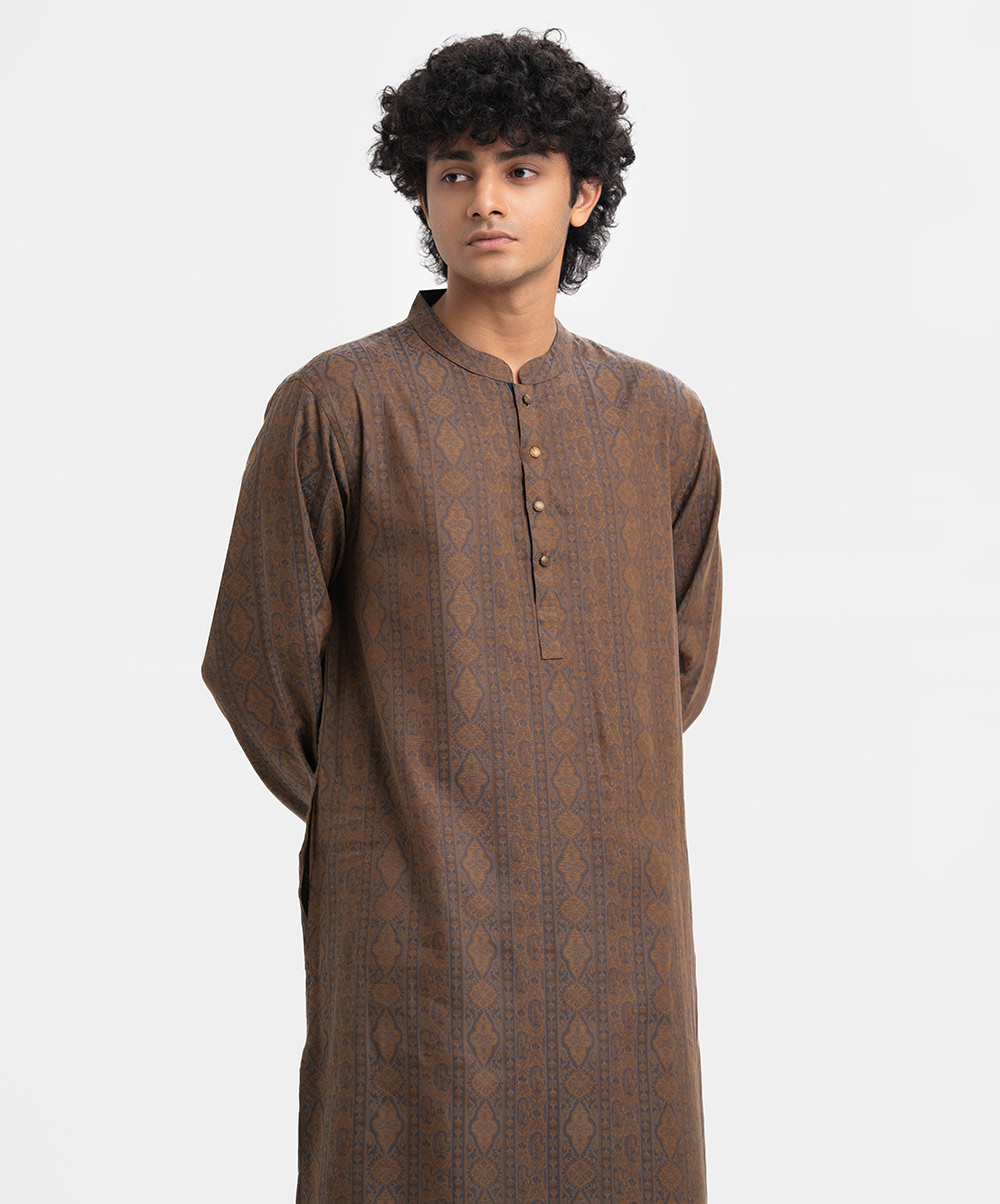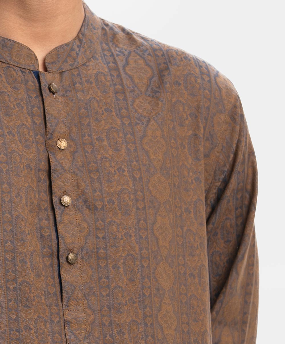 Men’s semi-fitted panjabi in jacquard fabric. Mandarin collar, inseam pockets and long-sleeved.