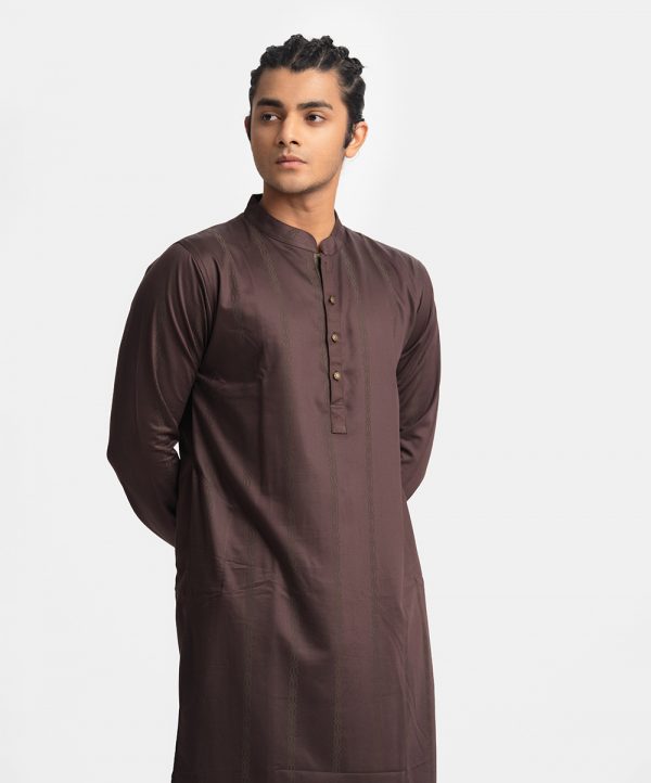 Coffee Brown Jacquard Fitted Panjabi