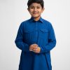 Kids kabli panjabi and pajama set in viscose fabric. Classic collar with double flap pocket on the chest. Inseam pockets on the sides.