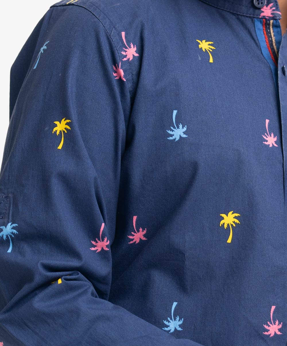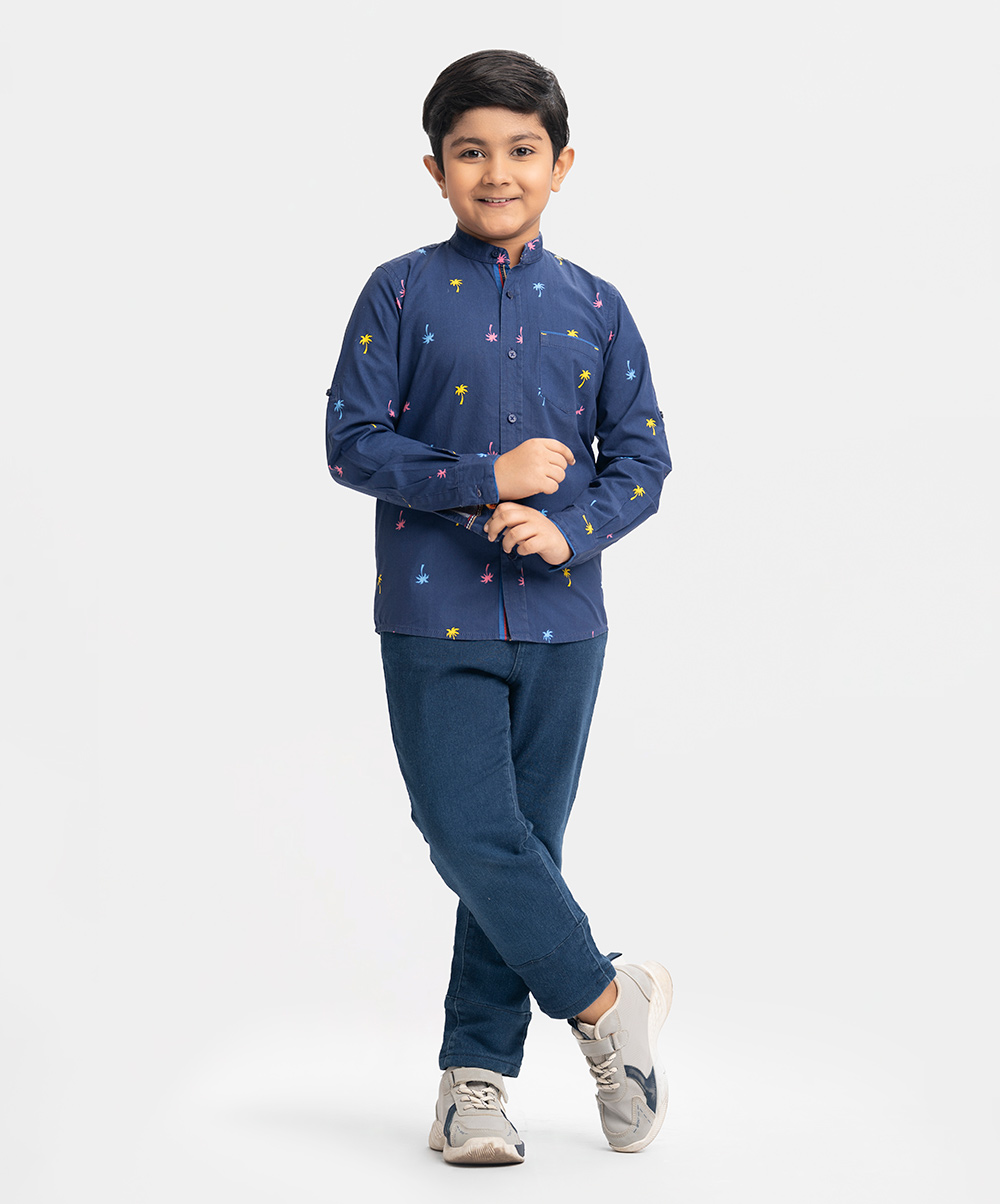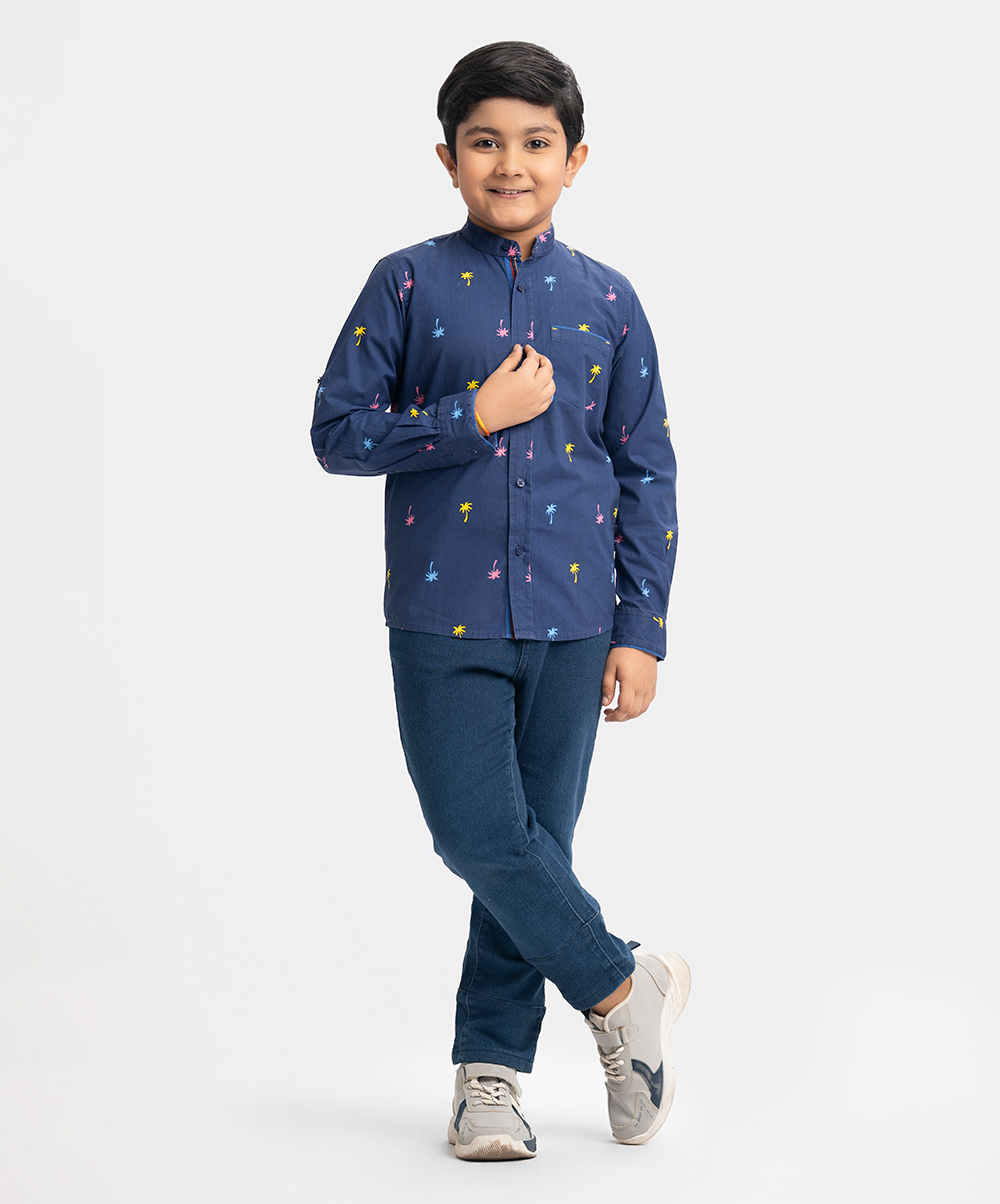 Blue Cotton Long Sleeve Casual Shirt
