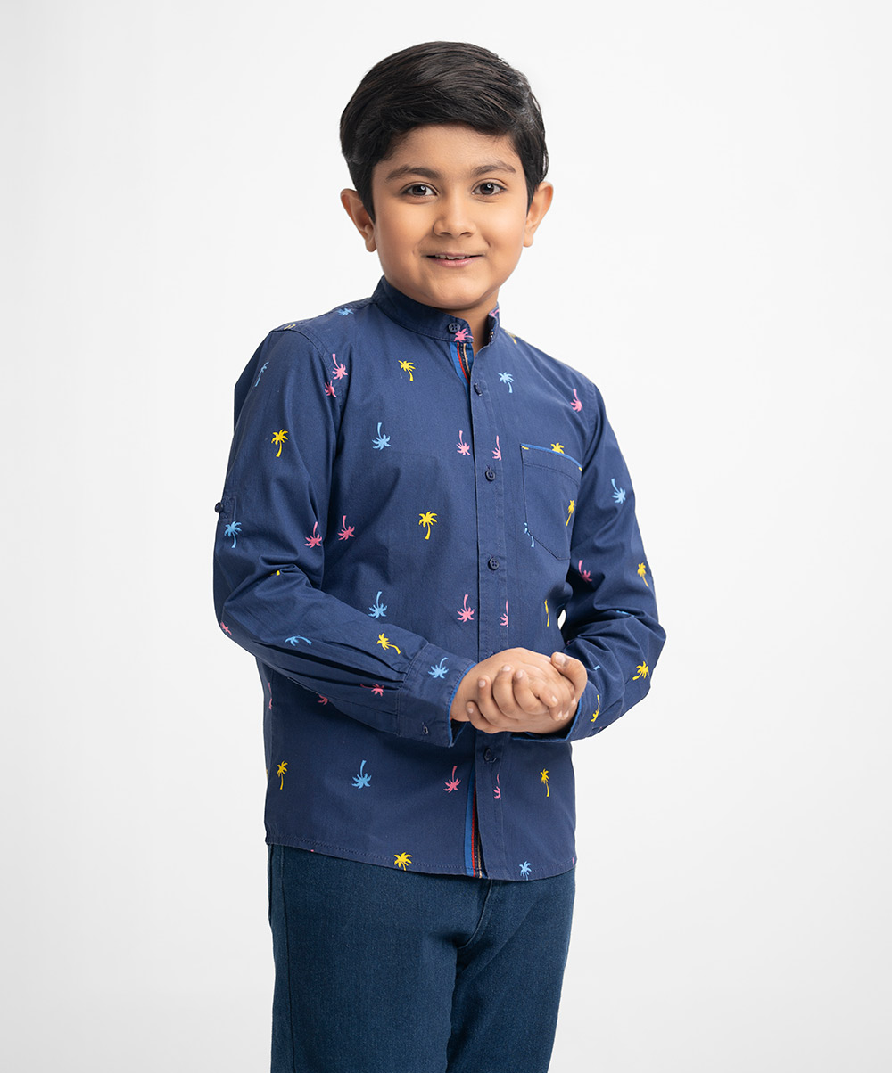 High-neck casual shirt in cotton fabric. Long sleeves, single chest pocket.