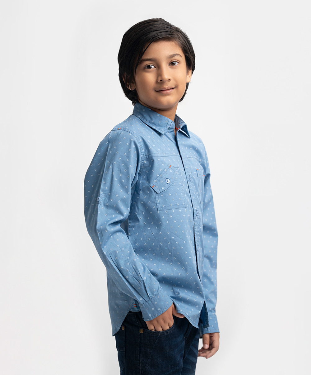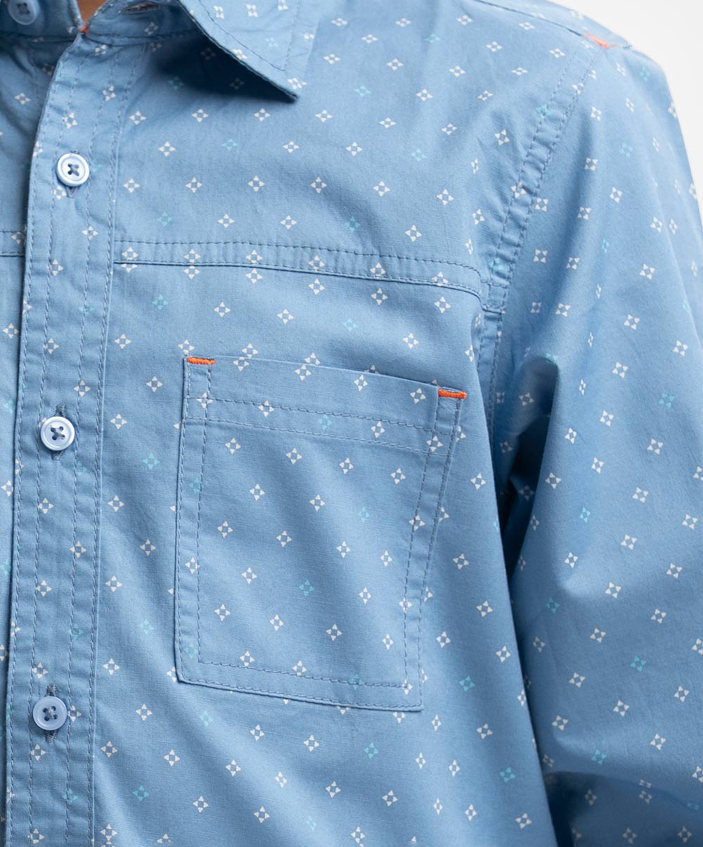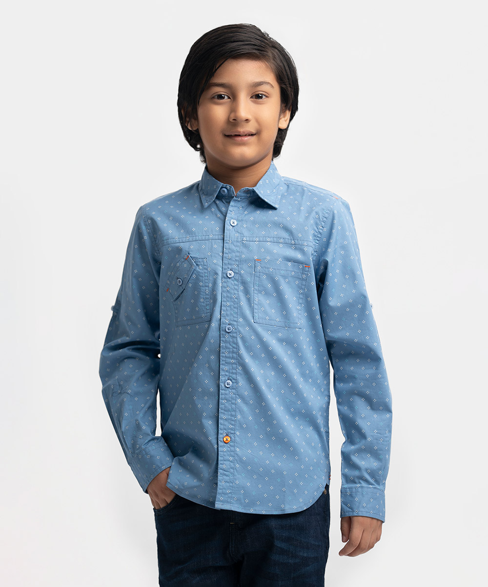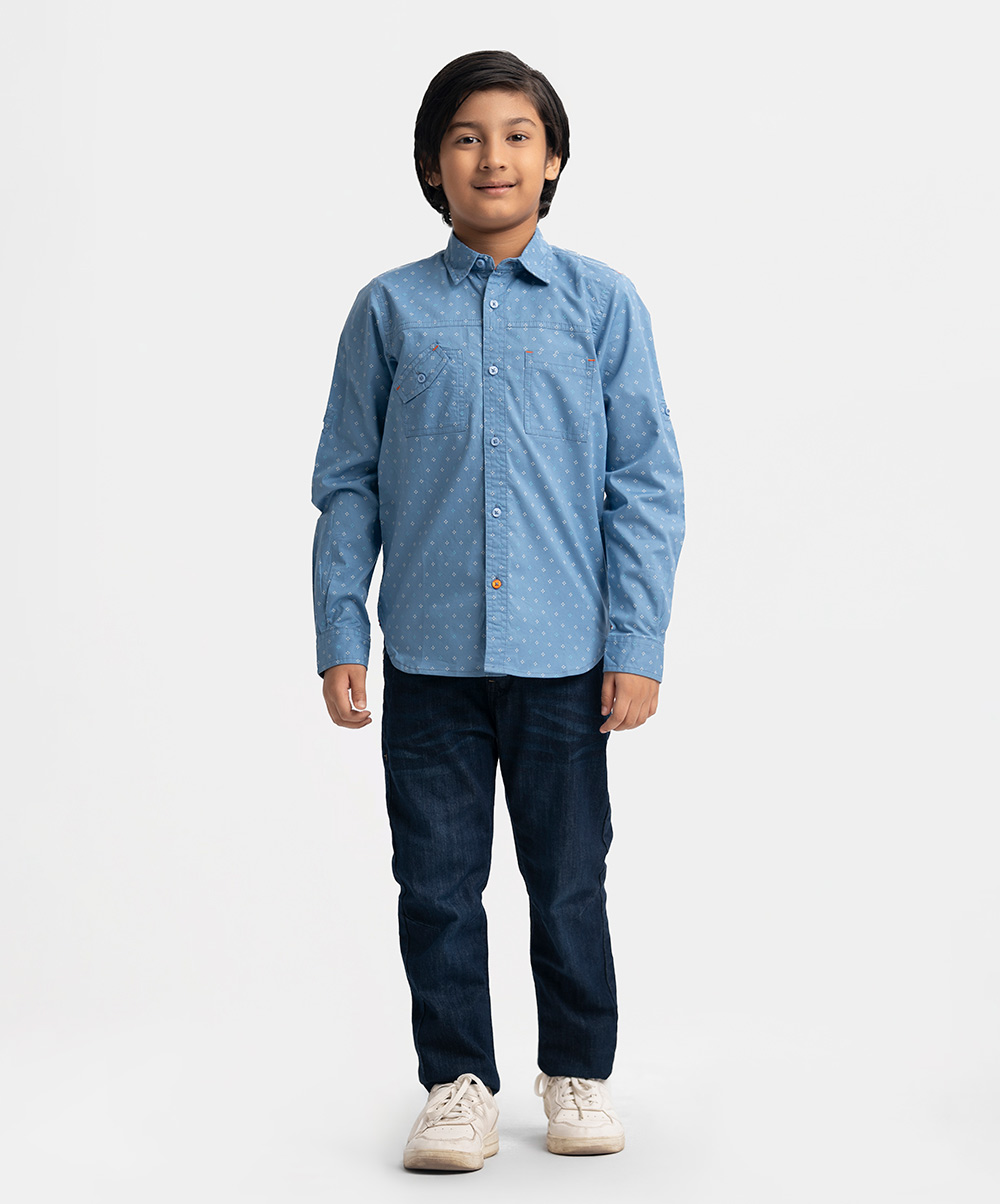 Classic collar casual shirt in cotton fabric. Long roll-up sleeves, stylish chest pockets.