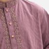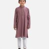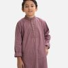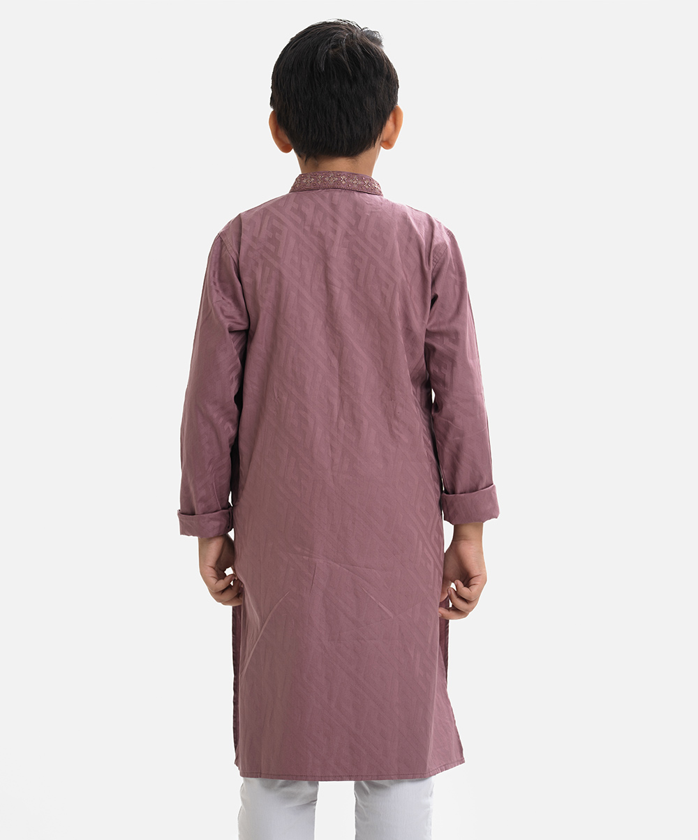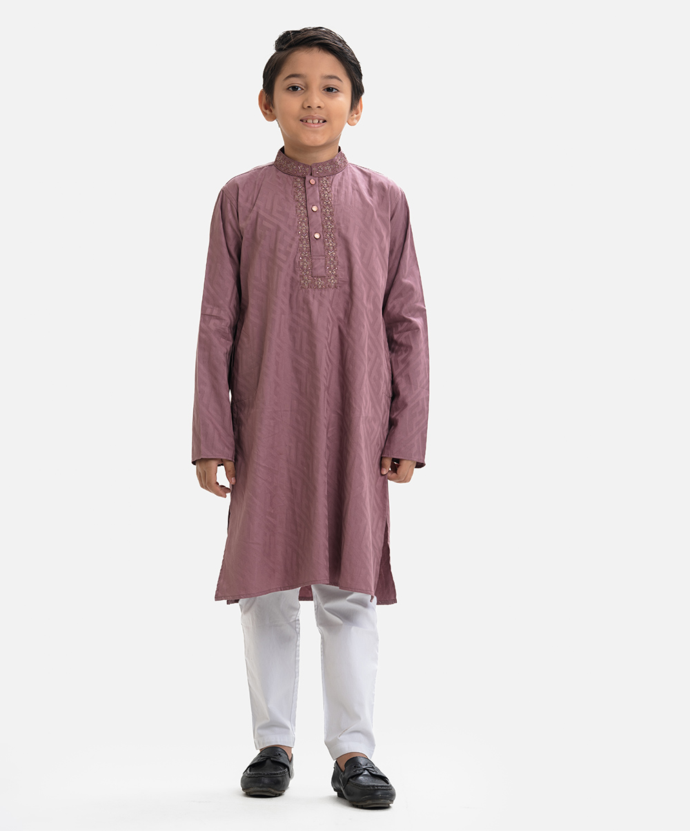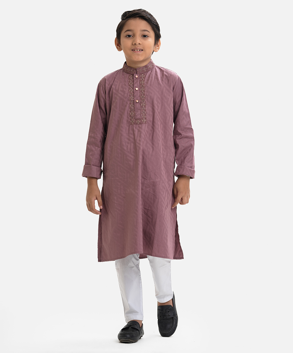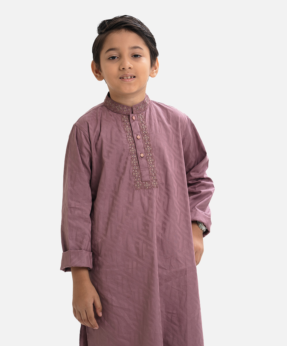 Kids classic cotton jacquard panjabi with karchupi and embroidery on the collar and placket.
