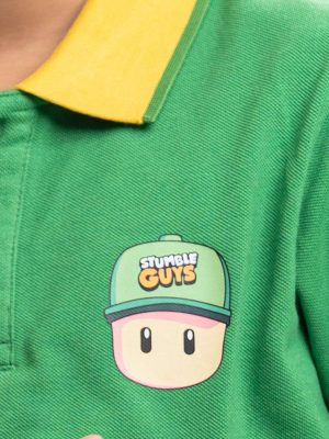 Green all-over printed Polo Shirt in Cotton pique fabric. Designed with a classic collar and short sleeves. Contrast tipping at collar and cuffs.
