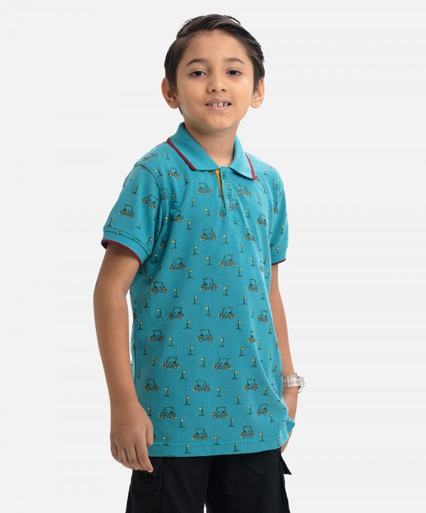 Kid boys Polo in cotton pique fabric. Classic collar, short sleeves and all-over printed.