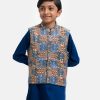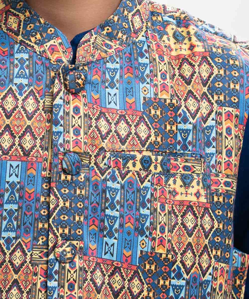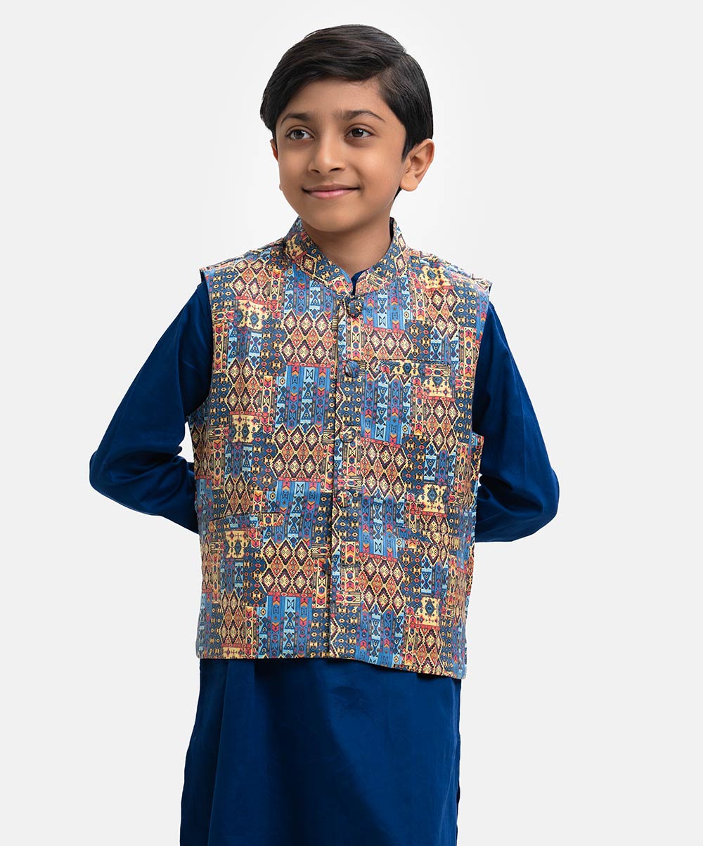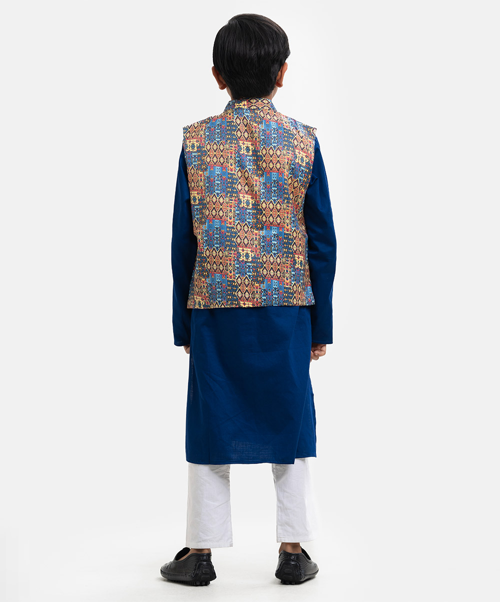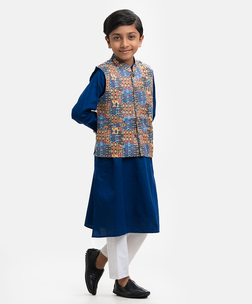 Kid boys panjabi set including a matching koti in cotton and twill fabric.