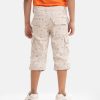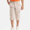 Kid boys’ printed three-quarter pants in twill fabric. Zipper fly and a button fastening at the front. Two side pockets, one pocket, two mobile pockets and two flap pockets on the back.
