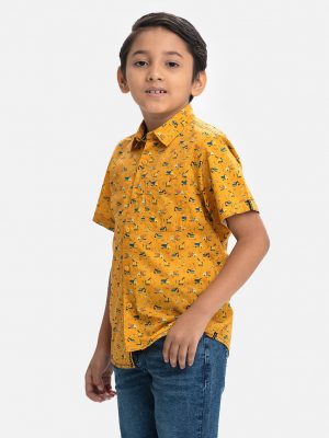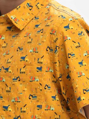 Yellow Cotton Short Sleeve Casual Shirt