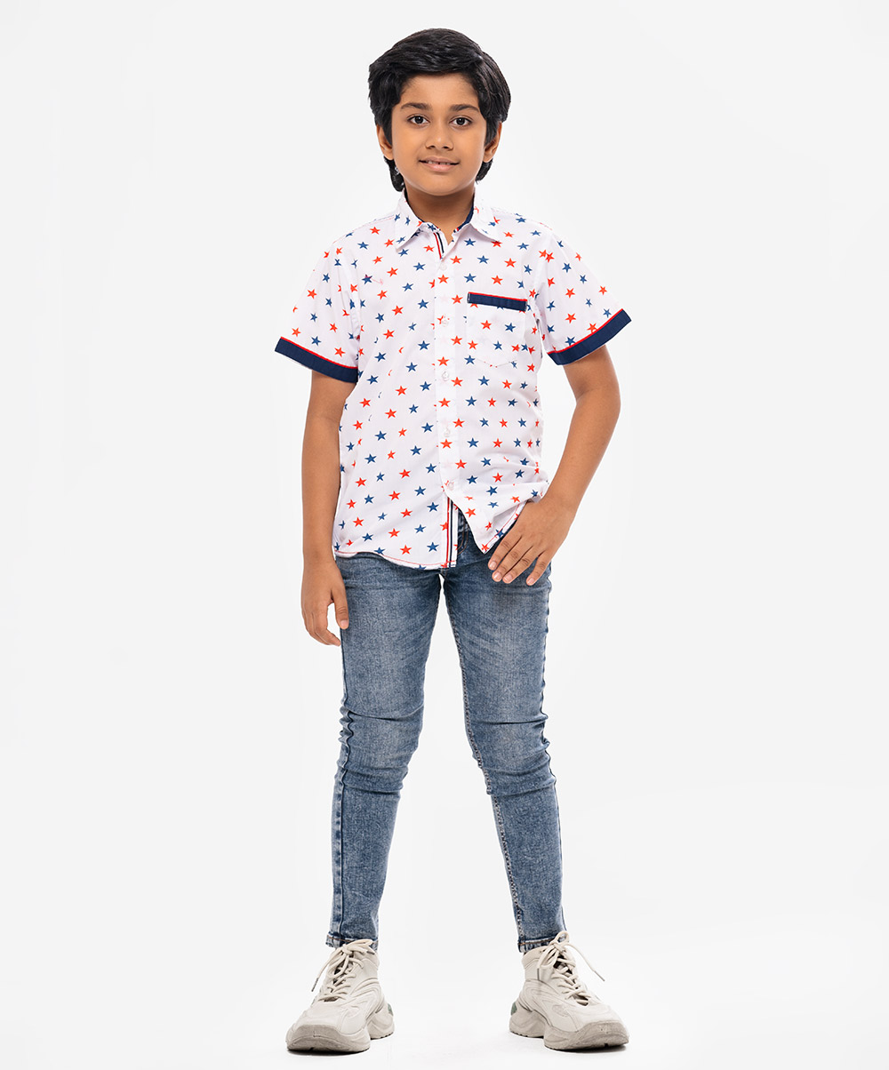 White Cotton Short Sleeve Shirt