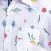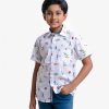 Kid boys short-sleeved casual shirt in cotton fabric. Classic collar and a chest pocket. Ocean nursery theme printed.