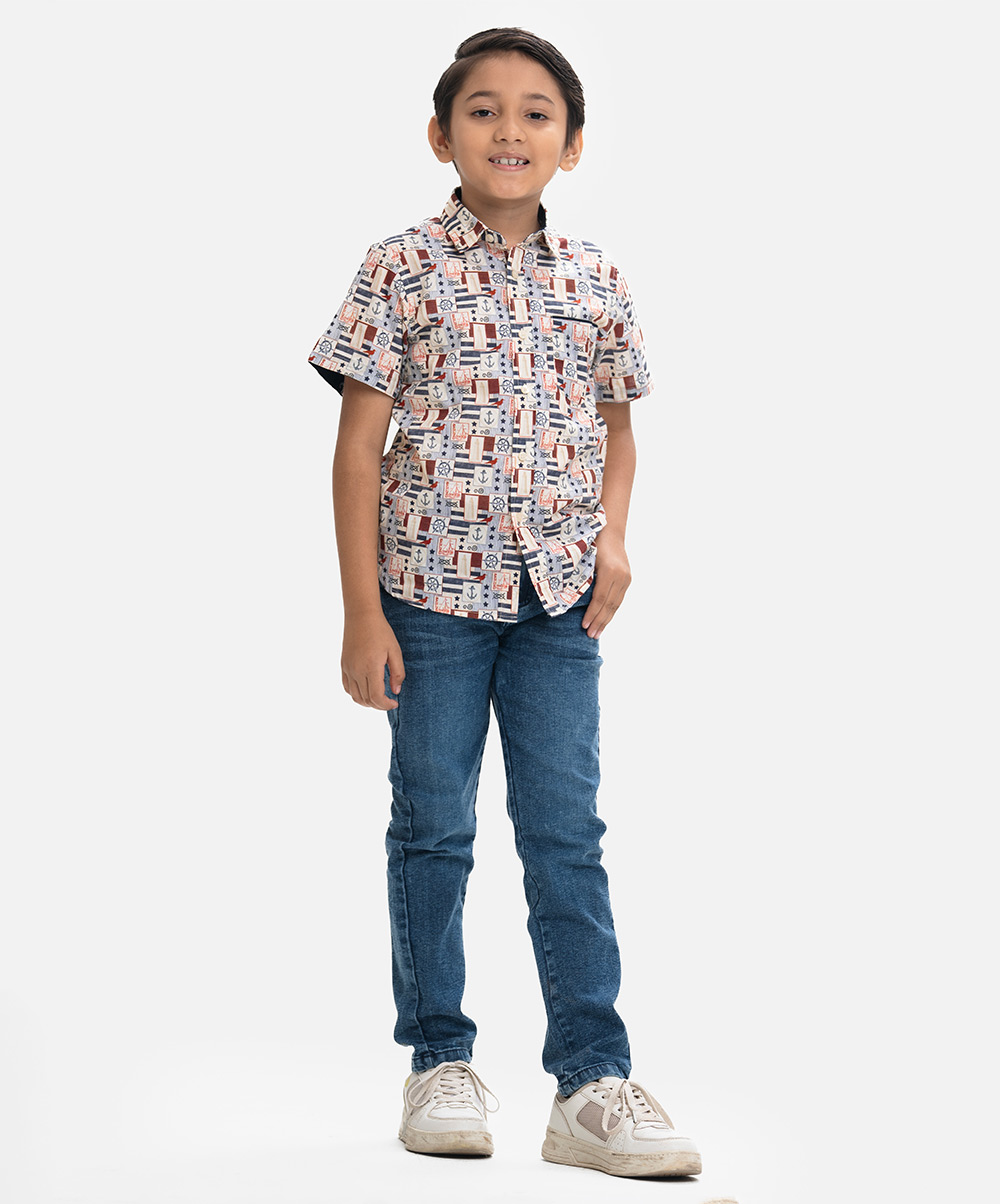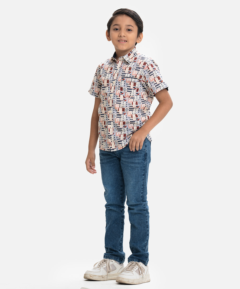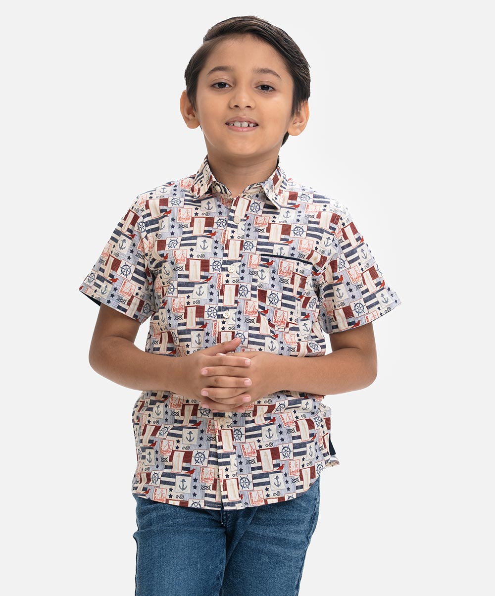 Printed Cotton Short-Sleeve Casual Shirt