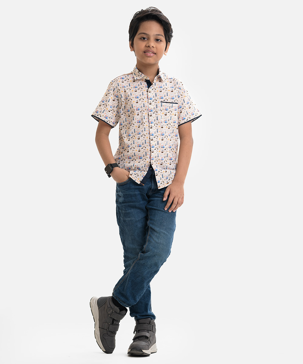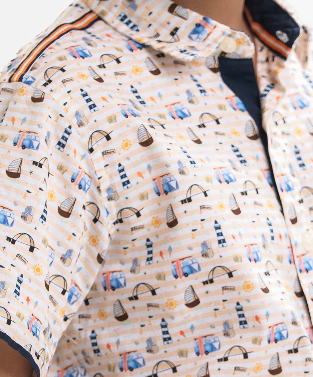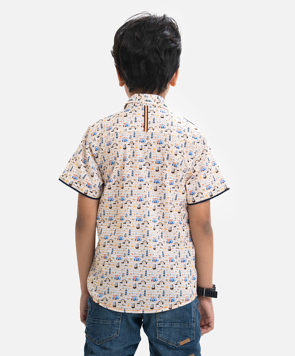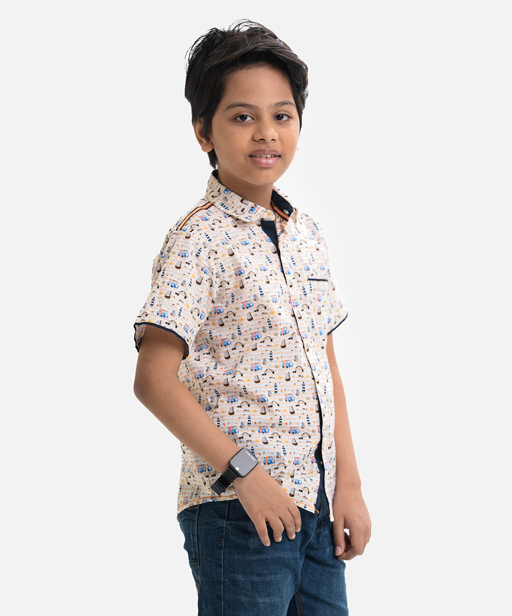 Printed Cotton Short-Sleeve Casual Shirt