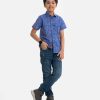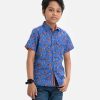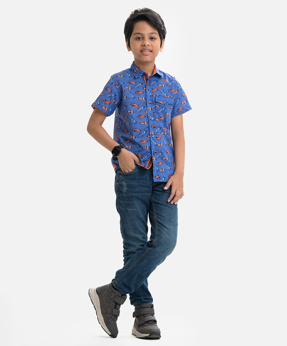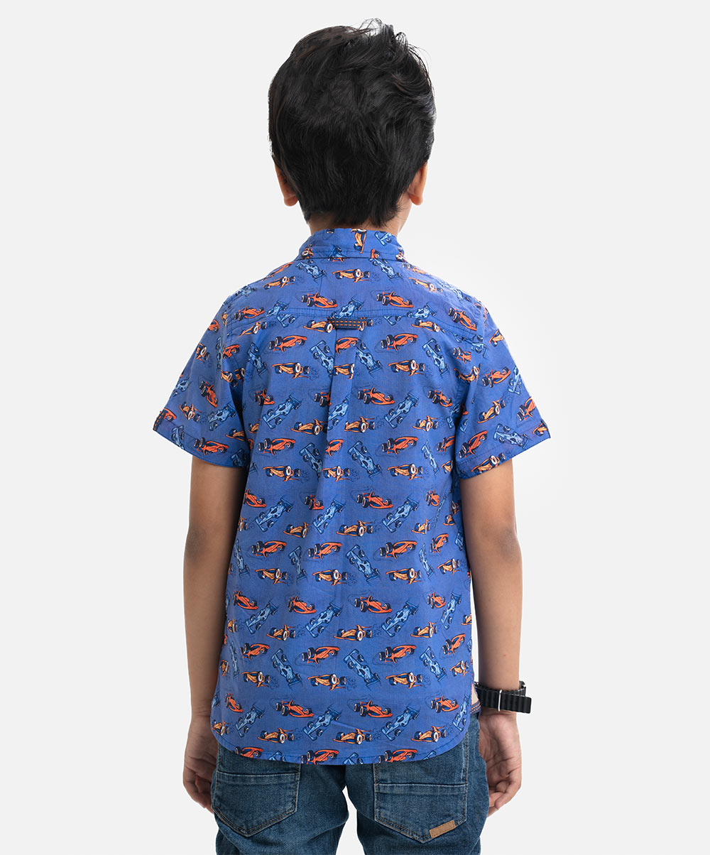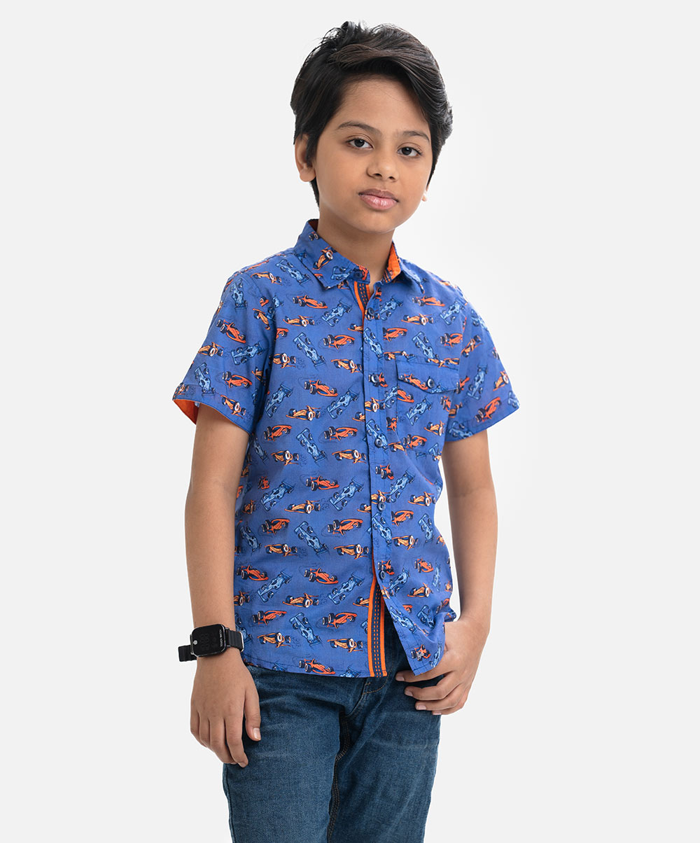 Short-sleeved cotton casual shirt with a classic collar and a single chest pocket.