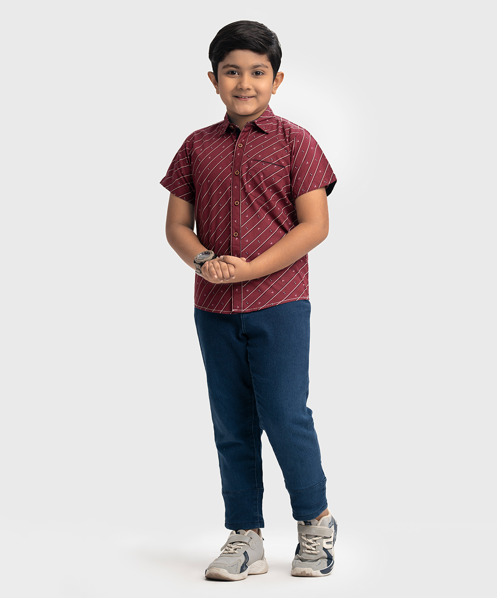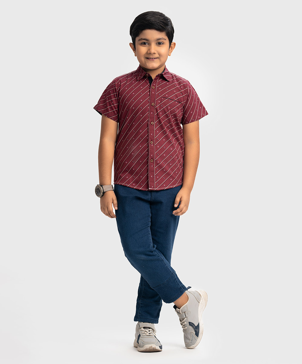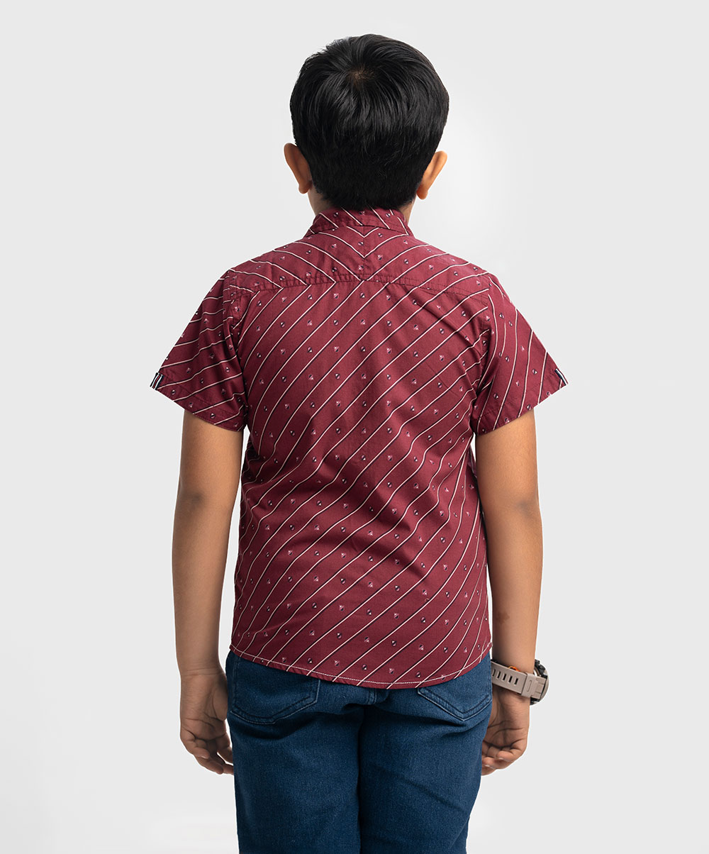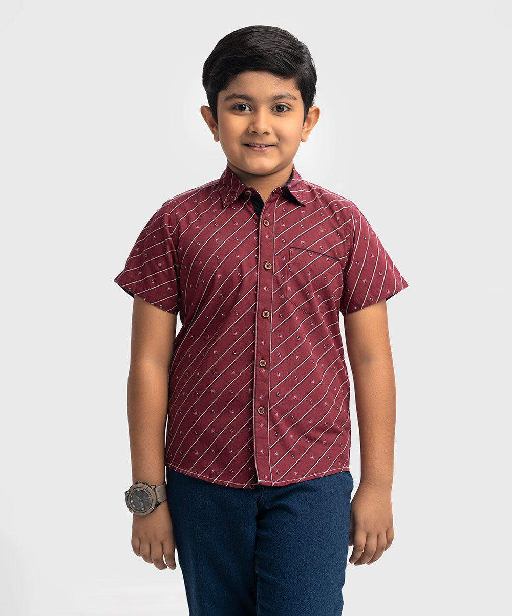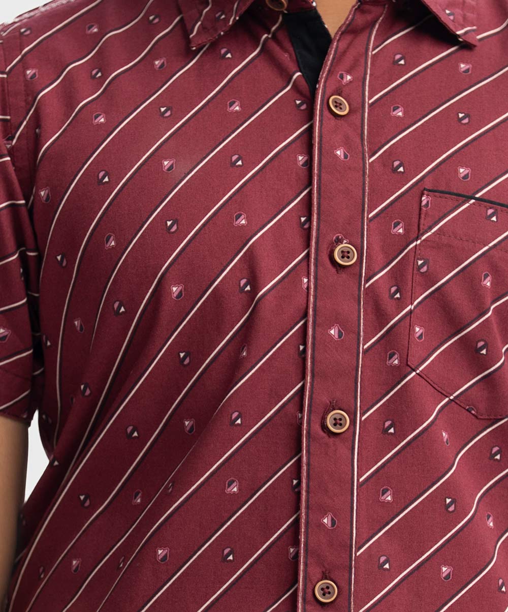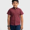 Red Cotton Short Sleeve Casual Shirt