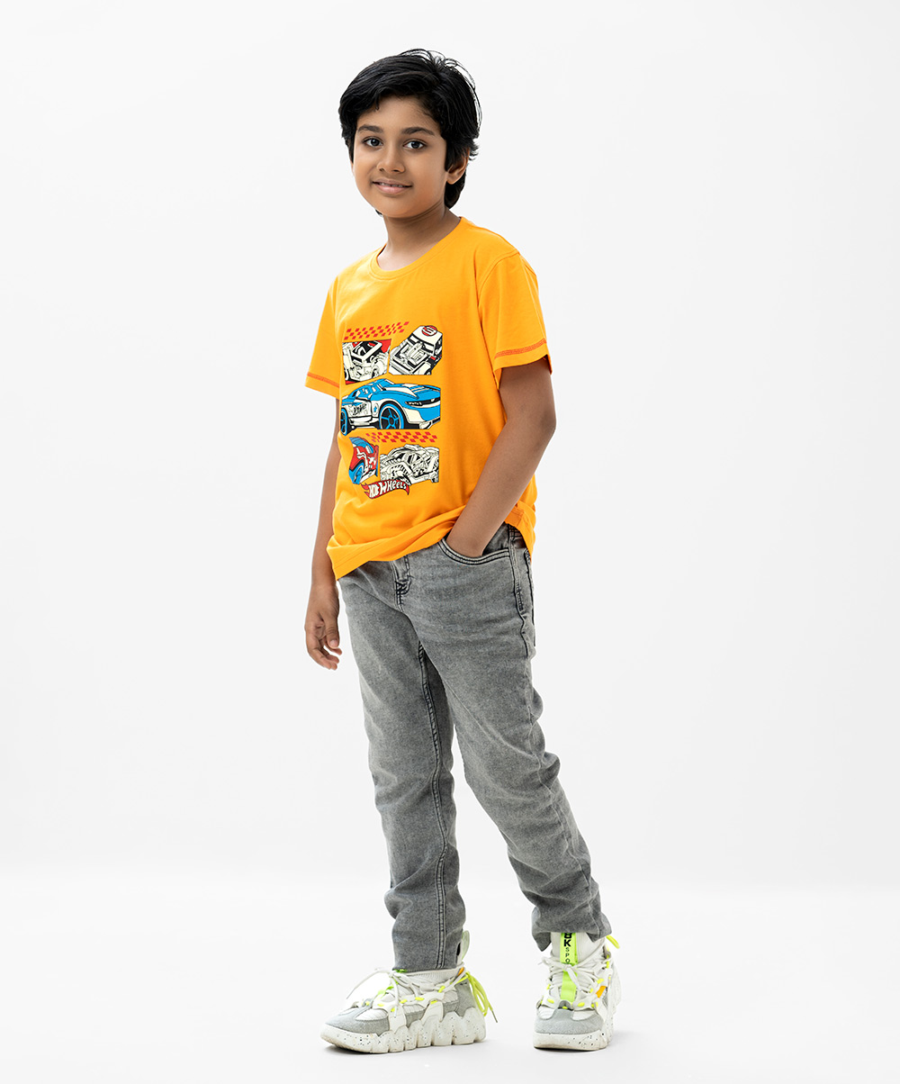 Kid boys short-sleeved T-shirt in single jersey fabric. Crew neck and print at front.