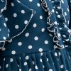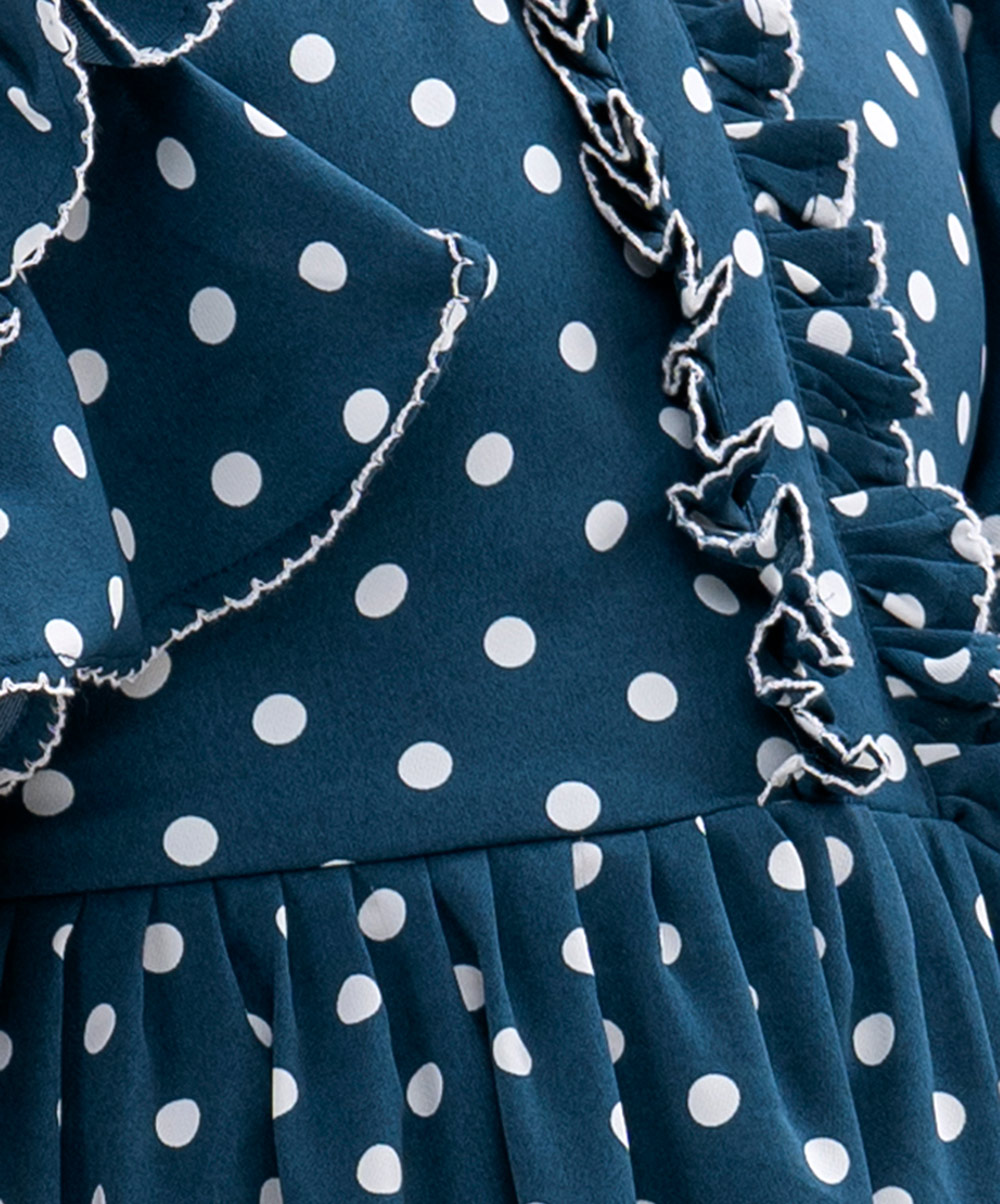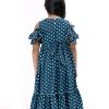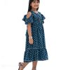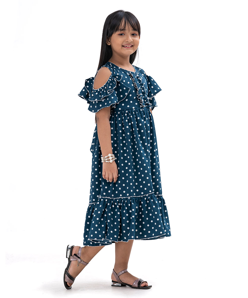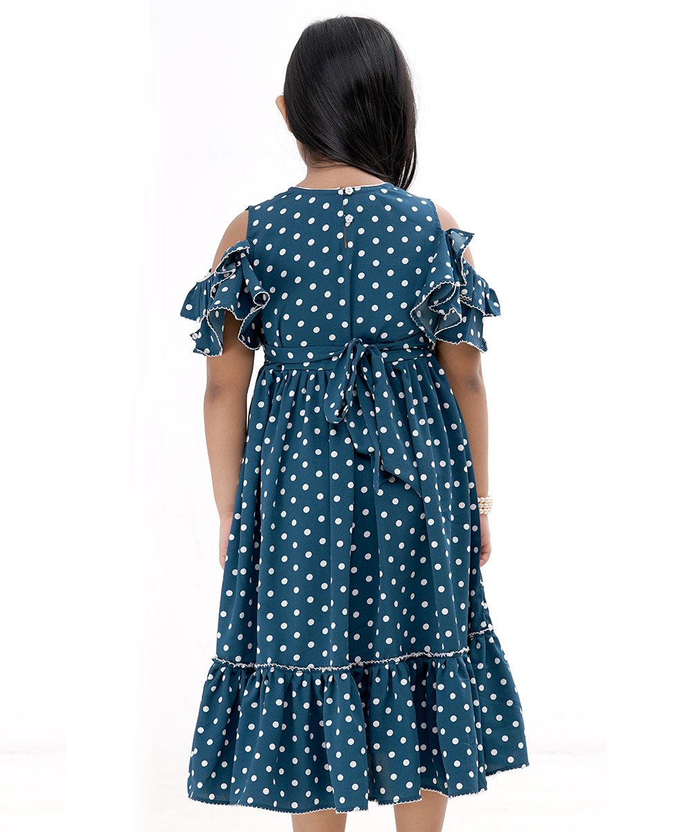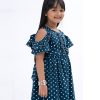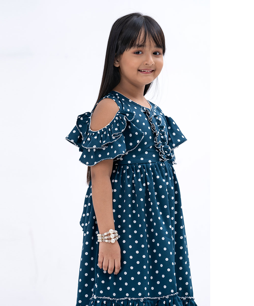 Blue cold shoulder pattern Frock in Georgette Fabric & use button front placket.