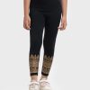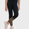 Kid girls leggings in stretchable cotton knit fabric. Concealed elasticated waistline and print detail at cuff.