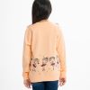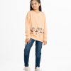 Kid girls solid color winter sweat shirt in terry fabric. Round neck, long sleeves, print at front and bow attach at yoke in both sides. Featuring narrow ribbing at the cuffs, and hem.