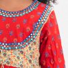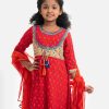 Kid girls printed salwar kameez in viscose fabric. Round neck, three-quarter sleeves kameez with karchupi at front. Chiffon dupatta and printed viscose palazzo.