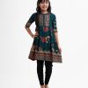 Kid girls printed long tunic in viscose fabric. Band neck, three quarter sleeves and pin tuck at front.