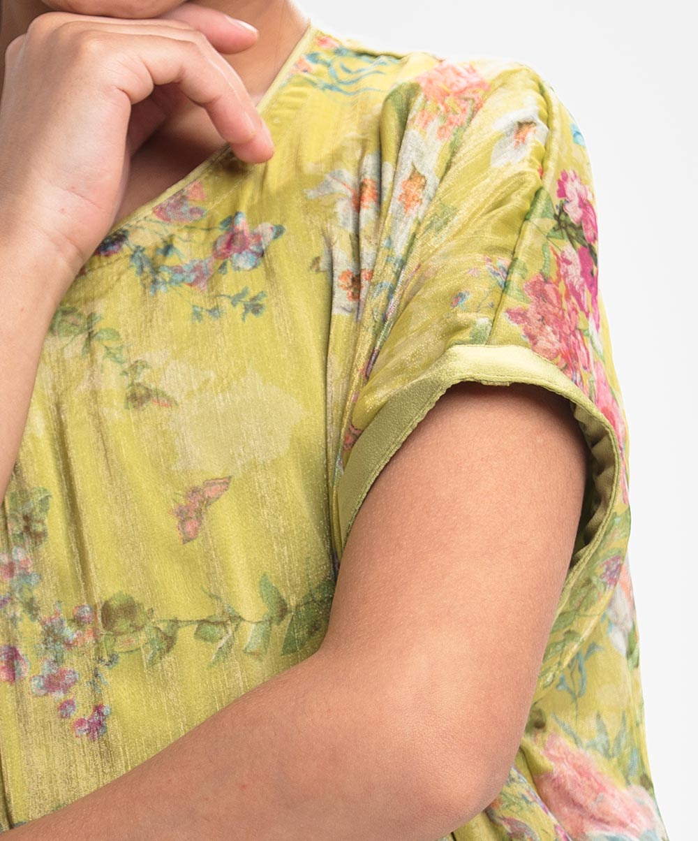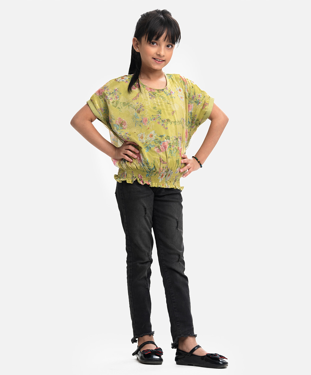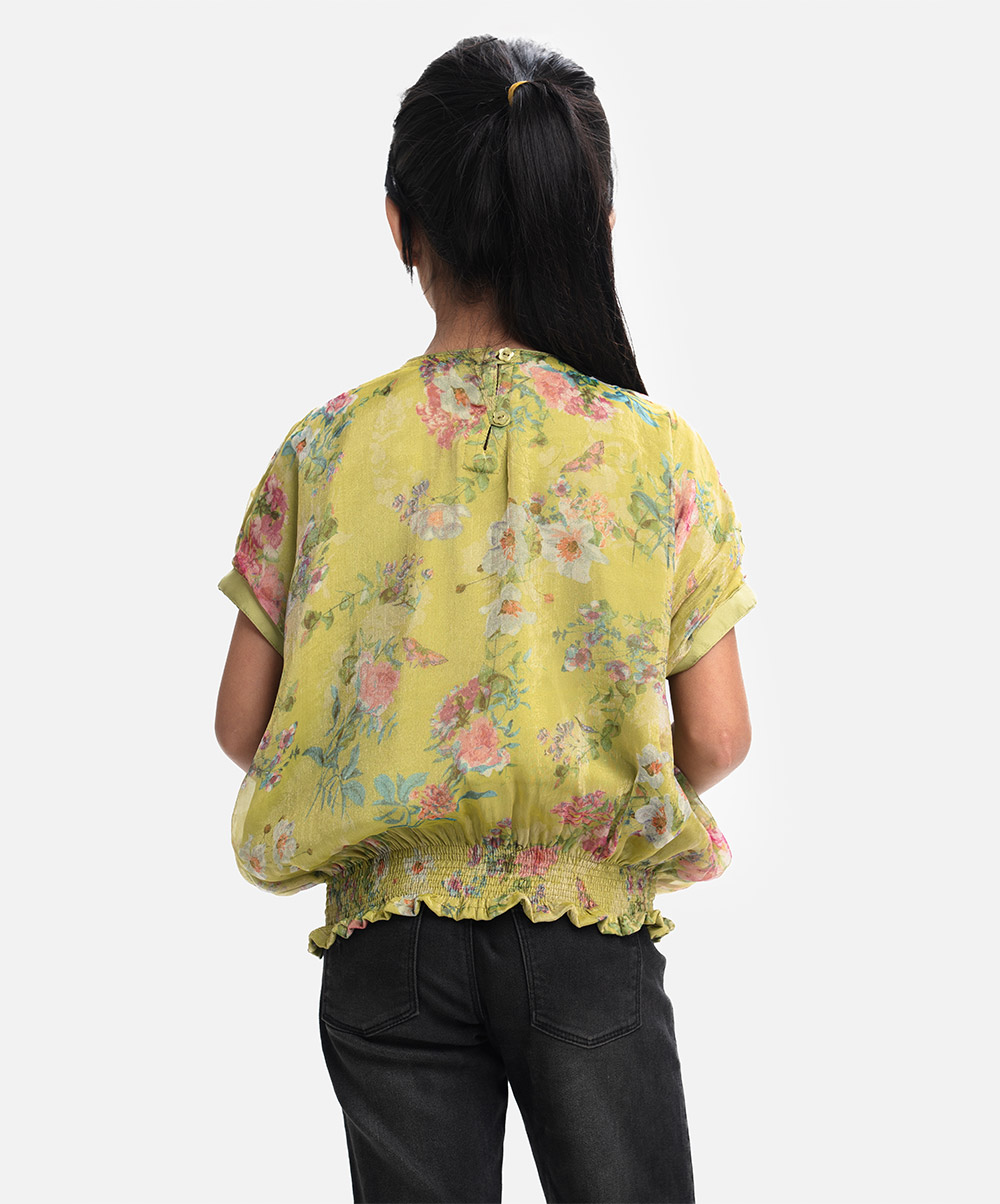 Kid girls tunic in printed Georgette fabric. Kimono sleeves, round neck and smoky waistline.