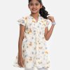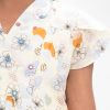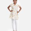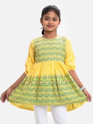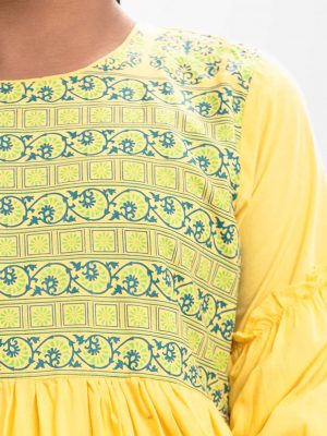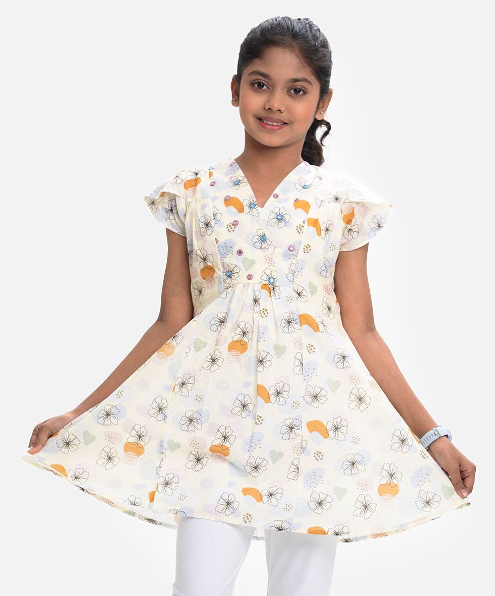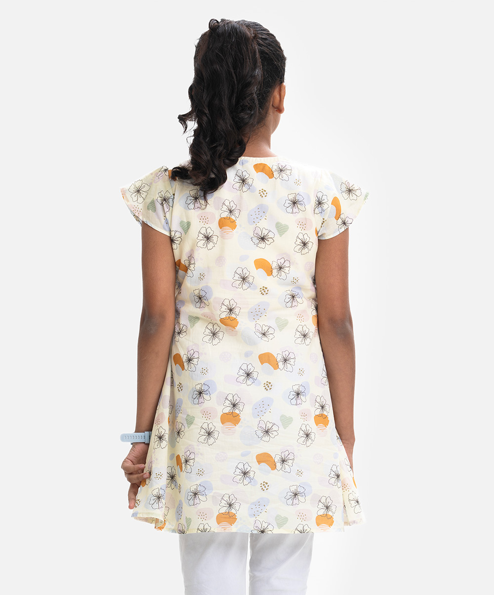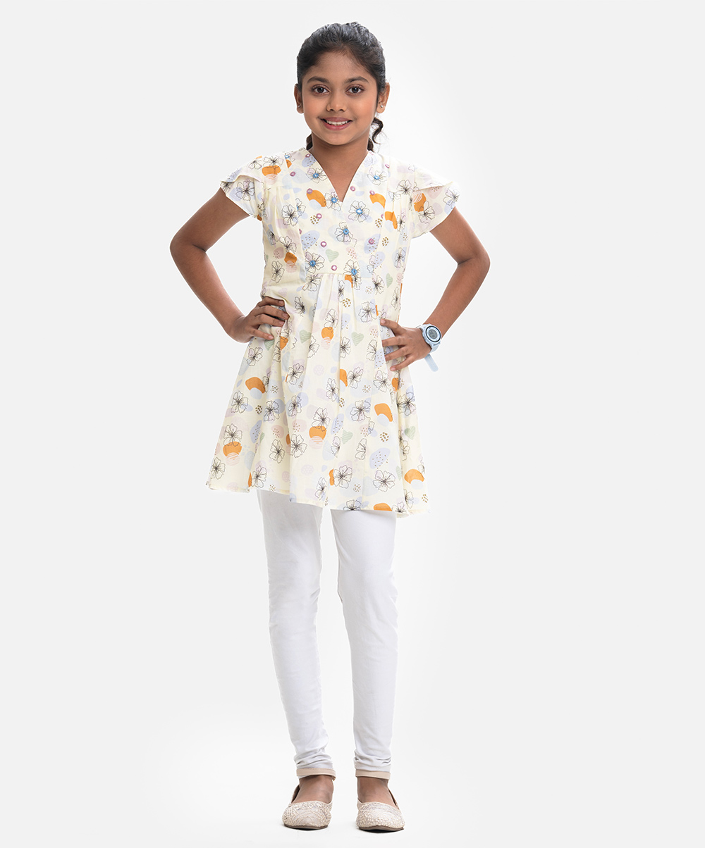 V-neck, A-line tunic in cotton fabric with petal cape sleeves and karchupi.