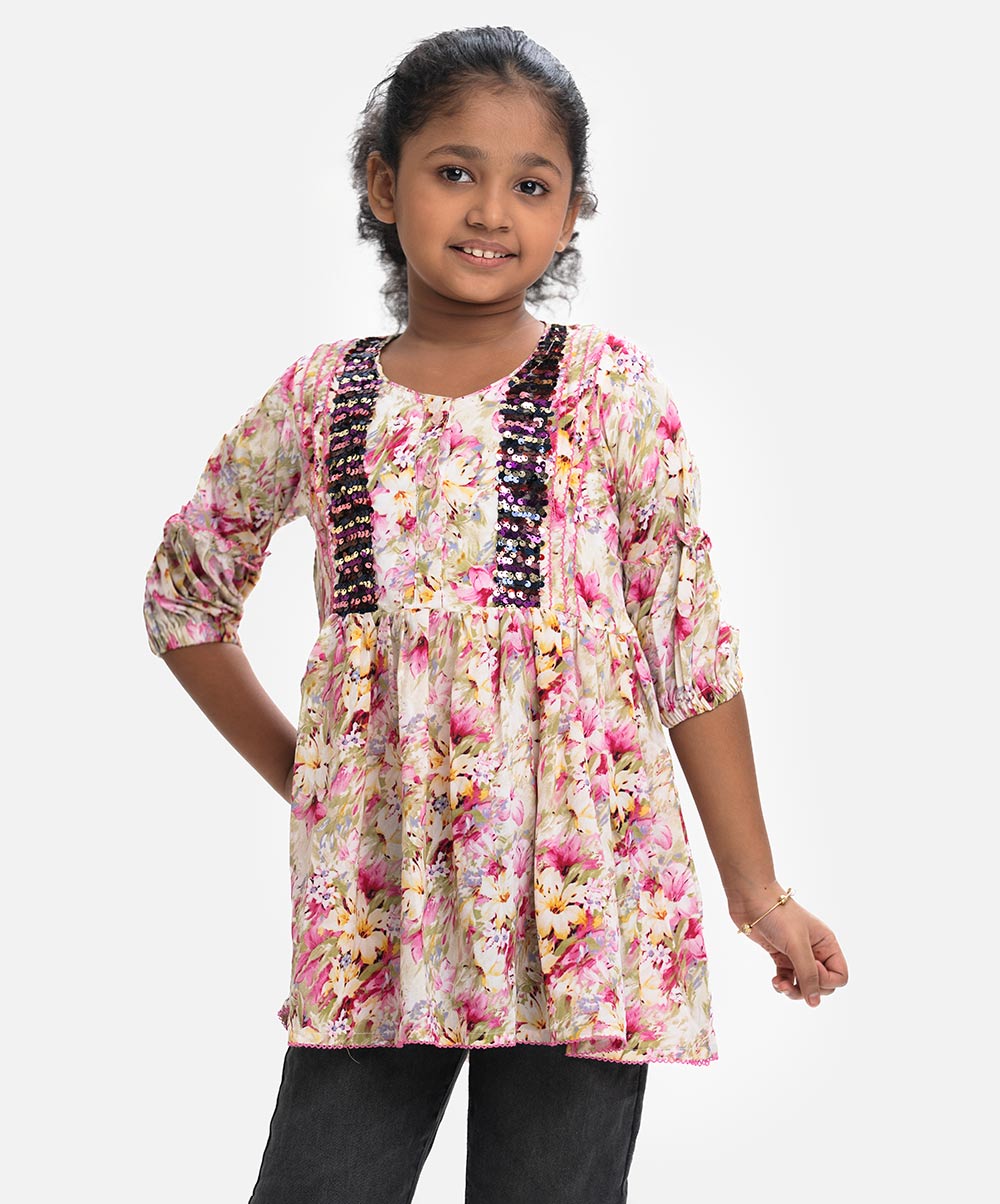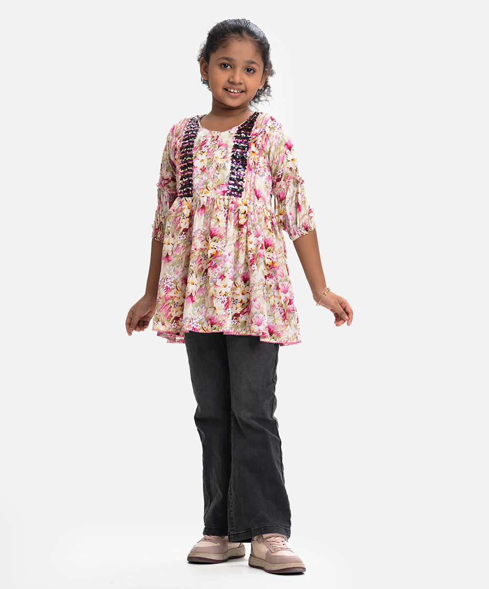 Printed Georgette A-line Kids Tunic