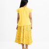 Kid girl’s woven set in georgette fabric with viscose inner. Cap sleeves, flower design karchupi at the front. Comes with a concealed elasticated with two pockets floral printed skirt.