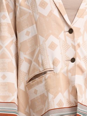 Women’s blazer in check textured fabric. Lapel collar, long sleeves, button fastening at the front. Two jetted pockets.