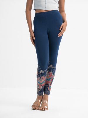 Printed ladies’ leggings in single jersey fabric. Concealed elasticated on the waistline.