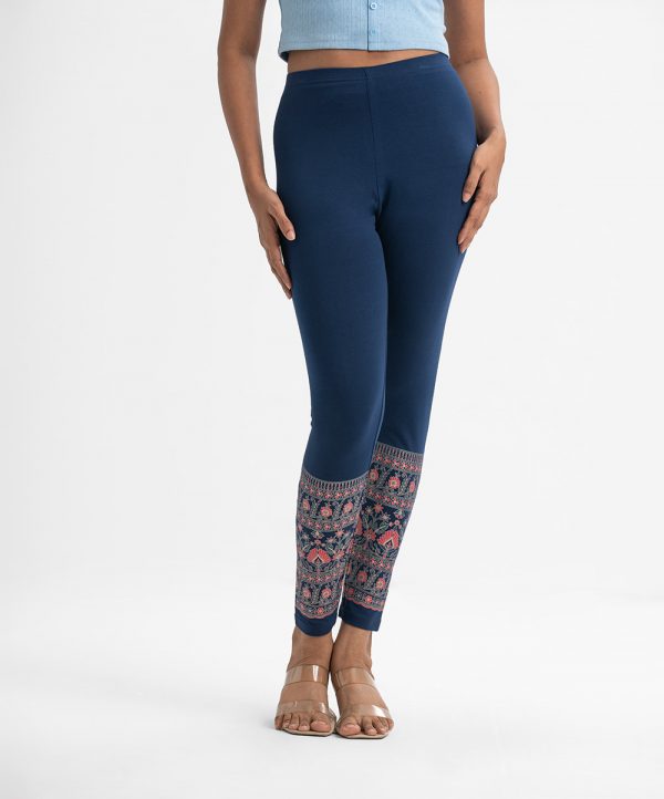 Women’s leggings in stretchable cotton knit fabric. Concealed elasticated waistline.